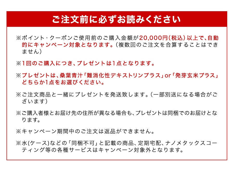 【選べるプレゼント】2万円以上で桑葉青汁もらえる♪