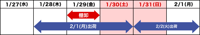 【例】1/28(木)ご注文→2/1(月)より順次出荷