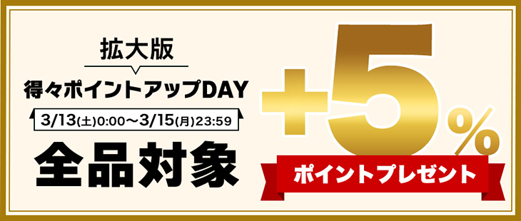 | キャンペーン特典内容 | 商品のご購入時に、お買い物ポイントにプラスして更に次回お使いいただける5%分のポイントプレゼント |