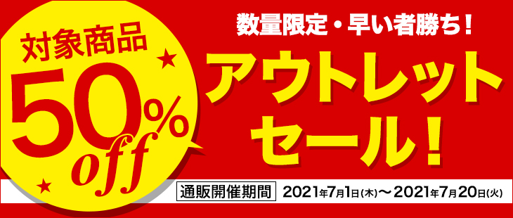 対象商品がアウトレット価格で50%OFF!