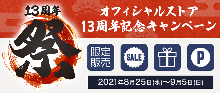 皆様の日頃のご愛顧に感謝して、今年も記念イベントを開催します! この期間しか買えない限定商品やスペシャル企画をご用意致しました。ぜひ13周年の記念イベントをお楽しみください。
