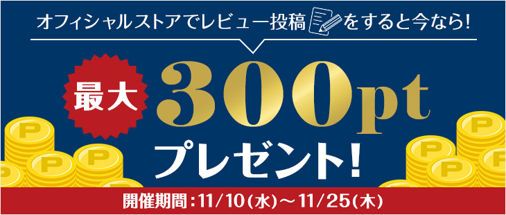| キャンペーン特典内容 | 対象商品にレビュー投稿で30ポイントプレゼント ※獲得ポイントは上限300ポイントとなります。 |
